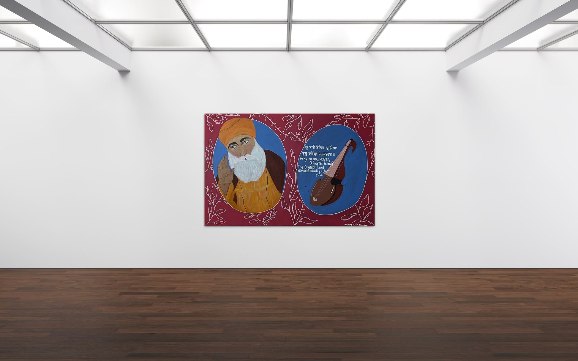 This painting captures Guru Nanak Dev Ji in a radiant blend of bright, soulful colours, each shade carrying warmth, peace, and divine energy. Guru Sahib holds the saaz with a calm, compassionate presence, as if the music itself is rising from a place of pure truth. The vibrant background wraps around him like an aura, symbolizing the light and harmony he brought into the world. Every stroke in this piece feels like a gentle shabad — steady, soothing, and filled with grace — inviting the viewer to pause, breathe, and connect with the calmness within.