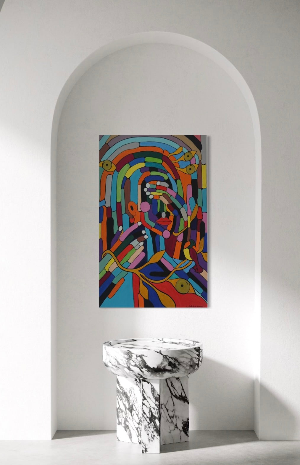 This artwork becomes a reminder that we are made of many journeys, many versions of ourselves. Growth is not clean—it is colourful, tangled, and beautiful.