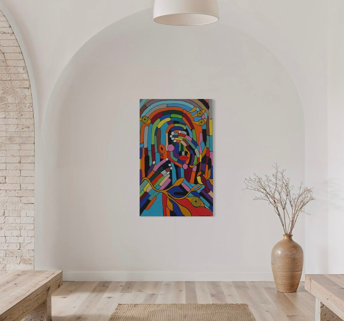 The composition mirrors the way a soul grows: not in straight lines, but in spirals, layers, and unexpected turns. Every colour holds a different emotion, yet none of them fight for space; they coexist, forming a harmony born from contrast.